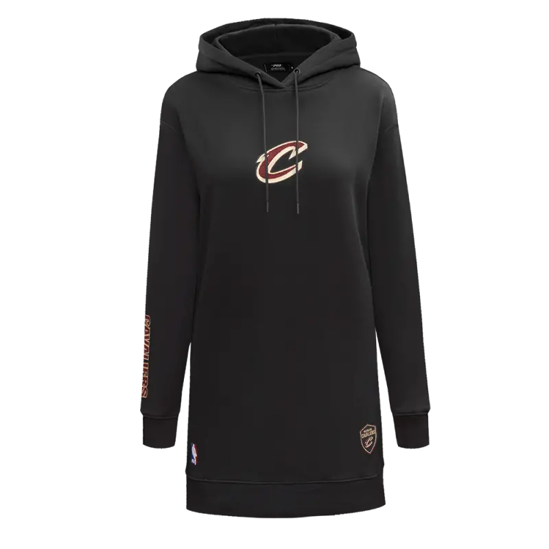 NBA CLEVELAND CAVALIERS CLASSIC WOMEN’S FLEECE HOODIE DRESS (BLACK)
