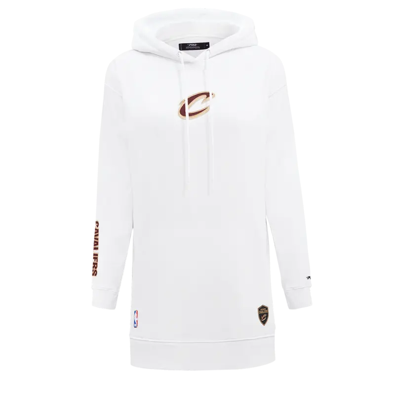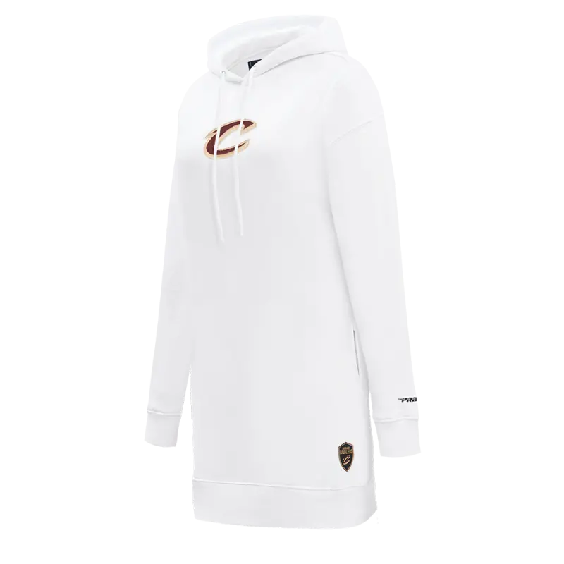 NBA CLEVELAND CAVALIERS CLASSIC WOMEN’S FLEECE HOODIE DRESS (WHITE)