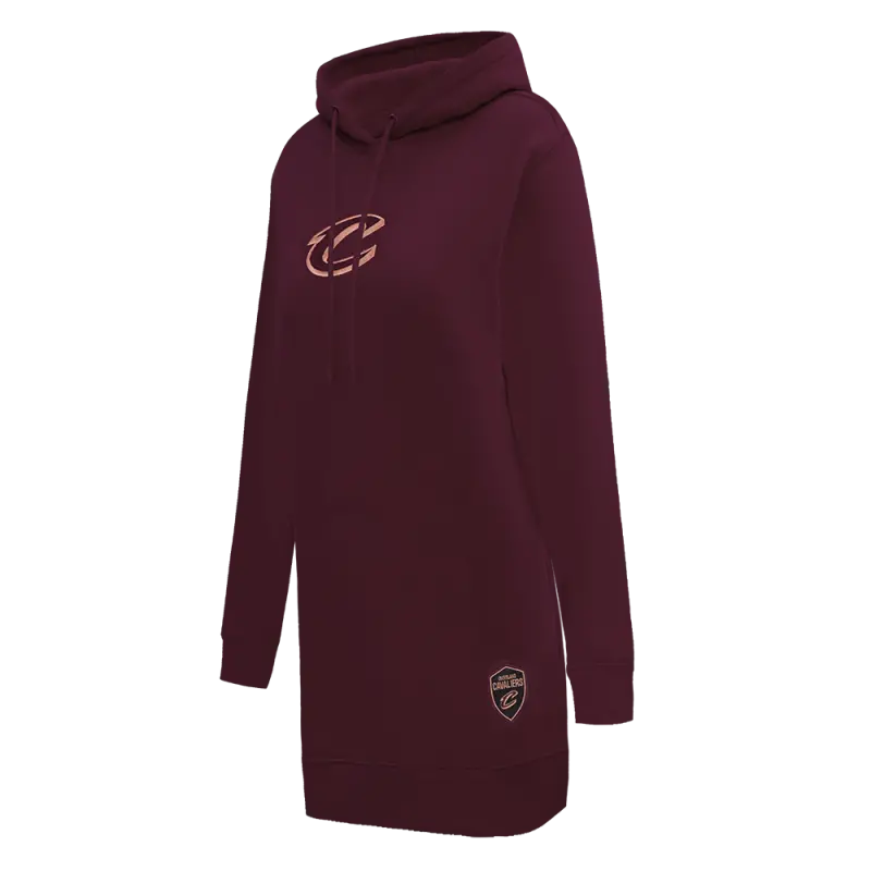 NBA CLEVELAND CAVALIERS CLASSIC WOMEN’S FLEECE HOODIE DRESS (WINE)