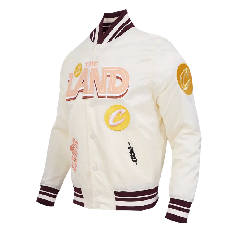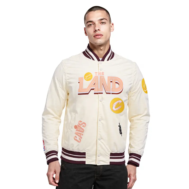 NBA CLEVELAND CAVALIERS CITY EDITION 25-26 MEN’S RIB SATIN JACKET (EGGSHELL/WINE)