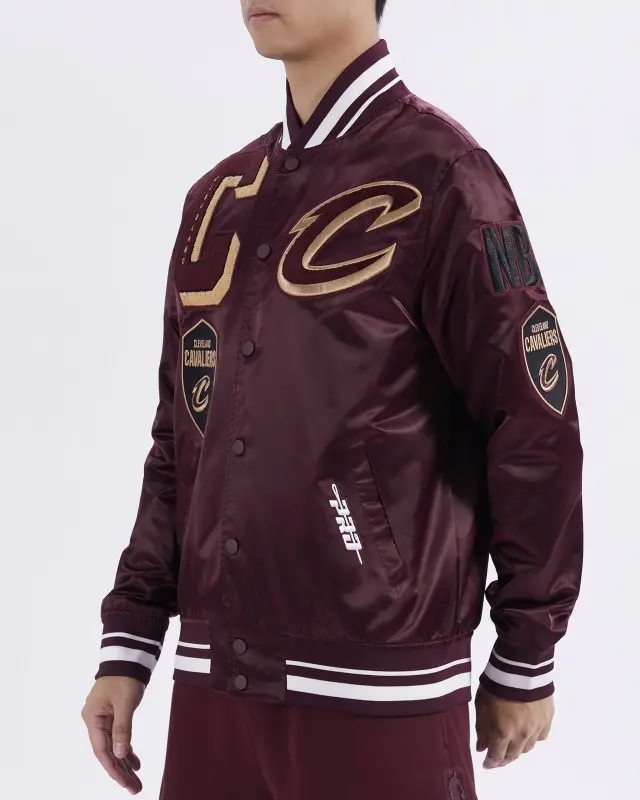 NBA CLEVELAND CAVALIERS MASHUP MEN’S RIB SATIN JACKET (WINE)