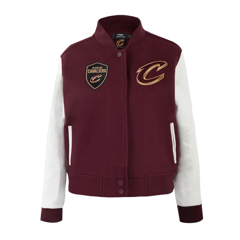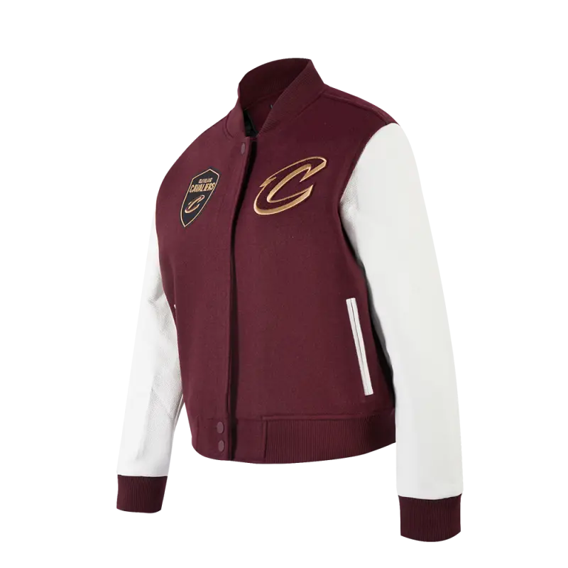 NBA CLEVELAND CAVALIERS CLASSIC WOMEN’S WOOL VARSITY JACKET (WINE/WHITE)