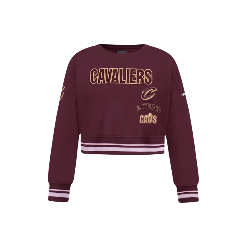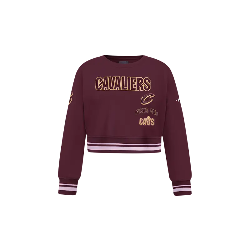 NBA CLEVELAND CAVALIERS RETRO CLASSIC LITTLE GIRLS RIB FLEECE CREWNECK (WINE)