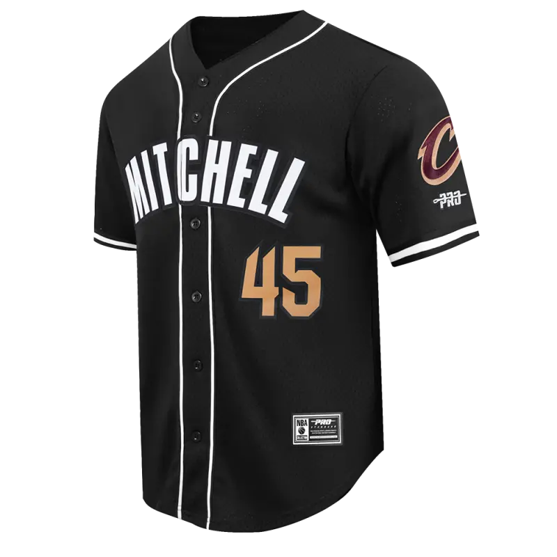 NBA CLEVELAND CAVALIERS DONOVAN MITCHELL #45 CLASSIC MESH PNN MEN’S MESH BUTTON DOWN SHIRT (BLACK)