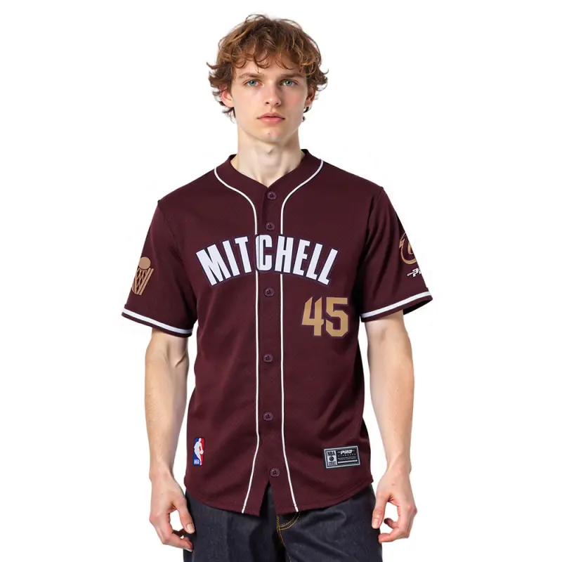 NBA CLEVELAND CAVALIERS DONOVAN MITCHELL #45 CLASSIC MESH PNN MEN’S MESH BUTTON DOWN SHIRT (WINE)