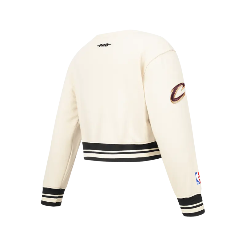 NBA CLEVELAND CAVALIERS RETRO CLASSIC BIG GIRLS RIB FLEECE CREWNECK (EGGSHELL/ BLACK)